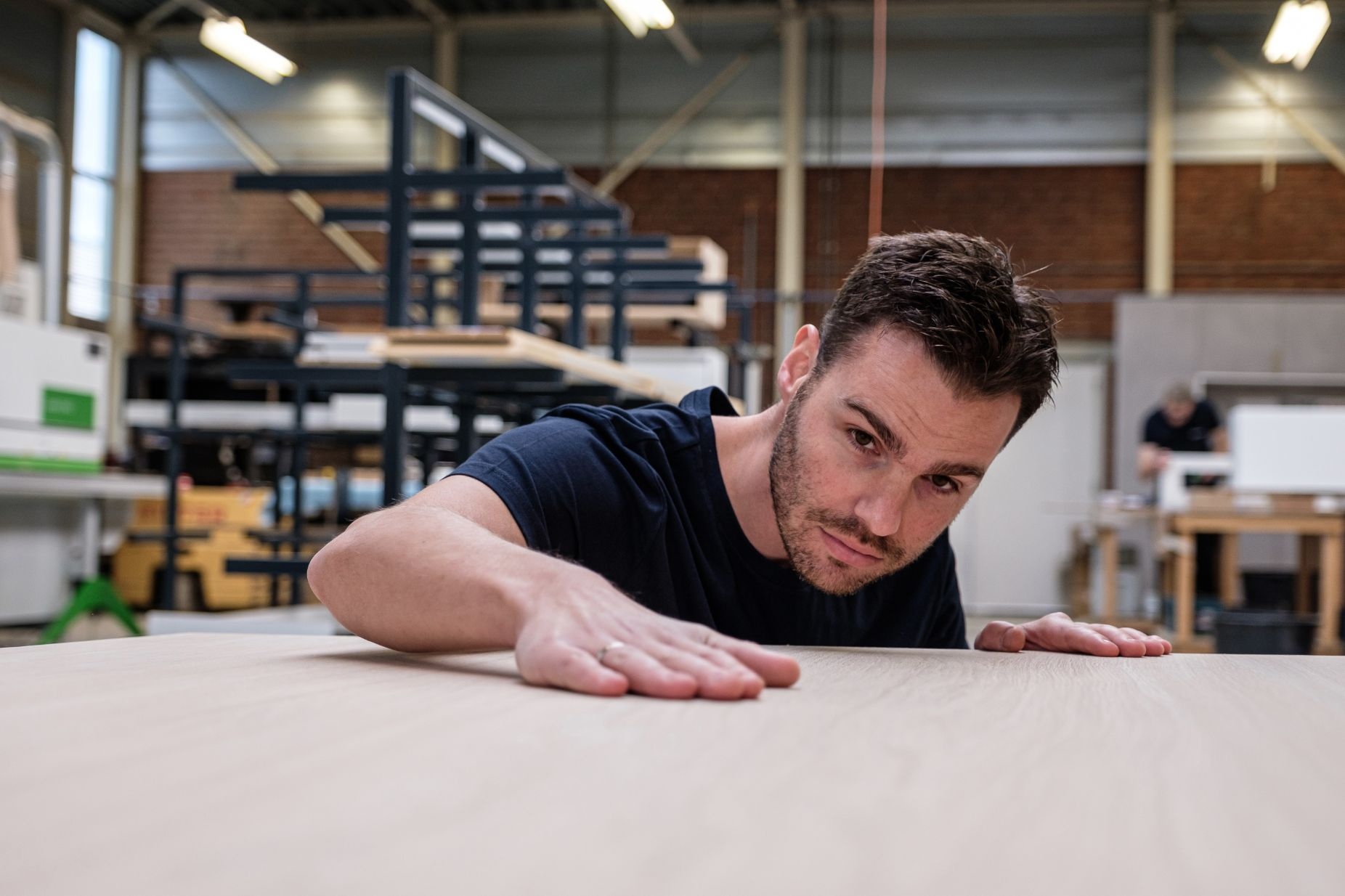 Bij de Ambiance en Excellent meubels schuren we alle randen en verlijmen we de verstekken.