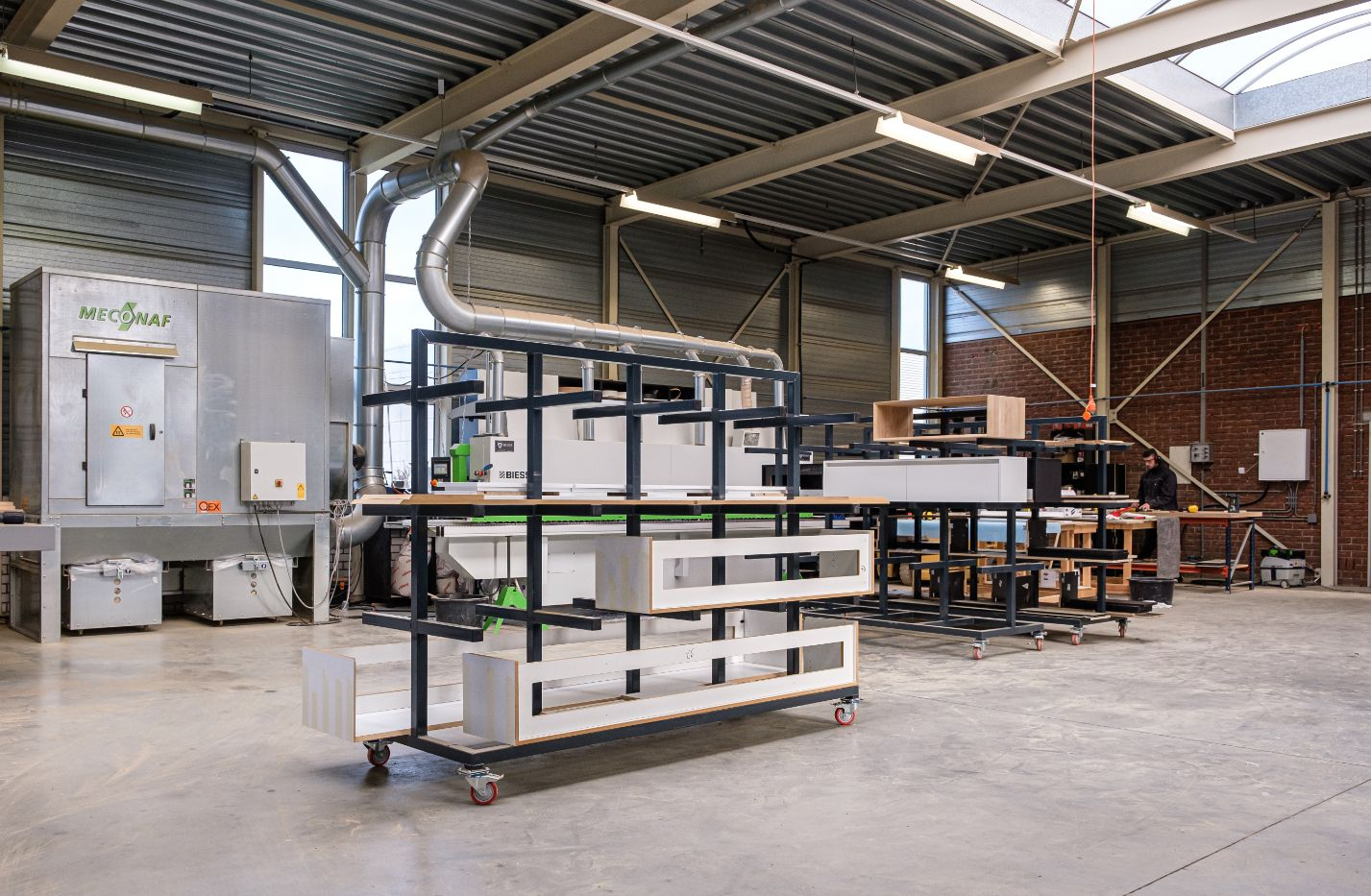 Het meubel en de kleppen worden gespoten in de gewenste ral kleur.