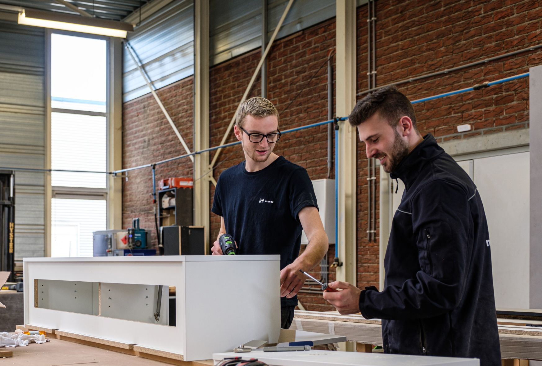 Het meubel wordt in elkaar gezet en voorzien van beslag. Daarna verpakken we het meubel voor verzending.