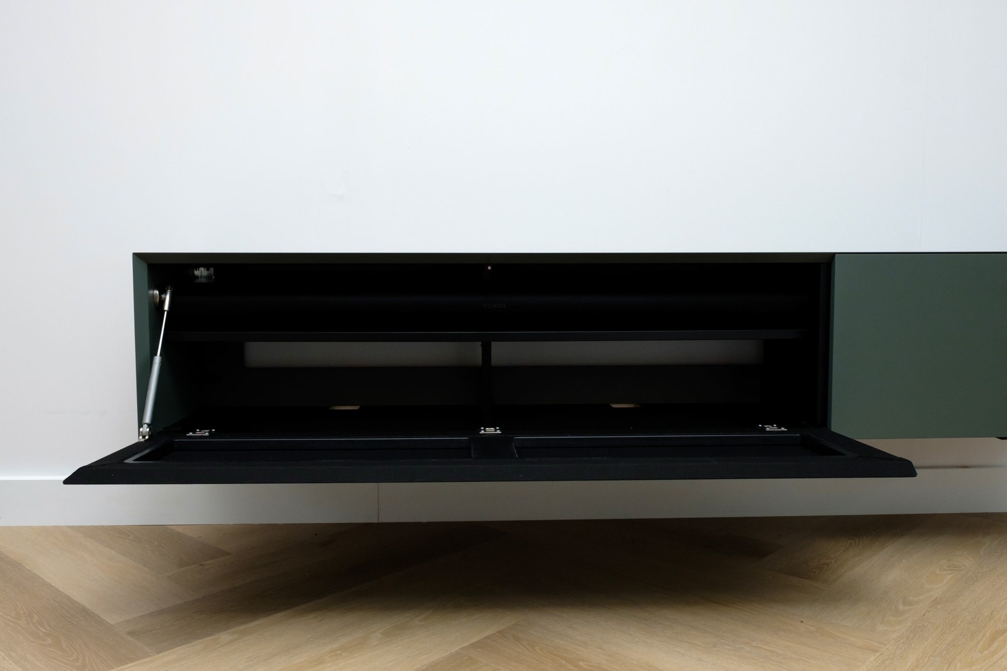 _x000D_Het Tv meubel volledig naadloos in dubbel verstek uitgevoerd en voorzien van 2 valkleppen. Met het “push-to-open†systeem en de hoogwaardige gasveren openen de kleppen heel rustig door een simpele duw tegen het front.