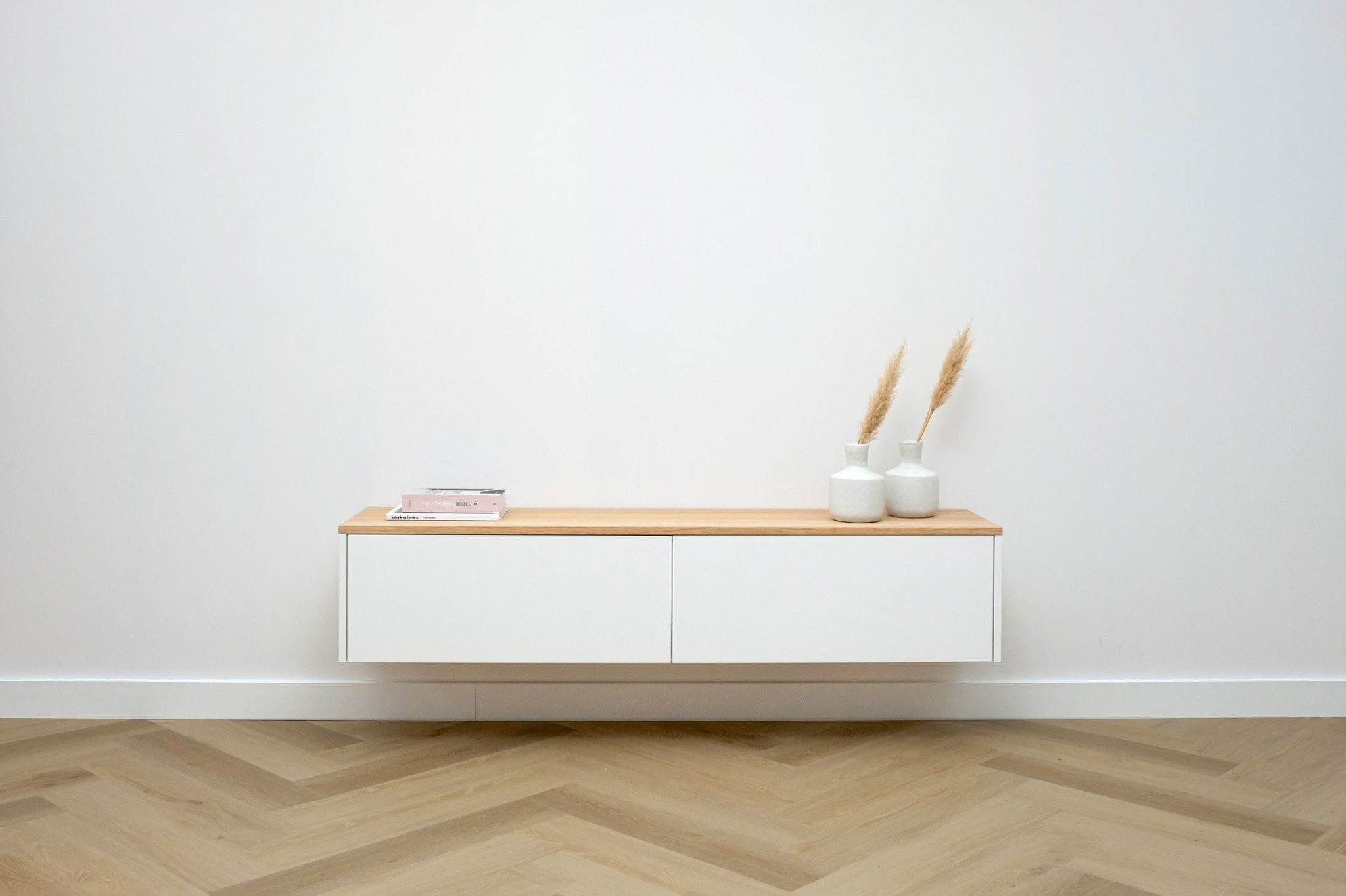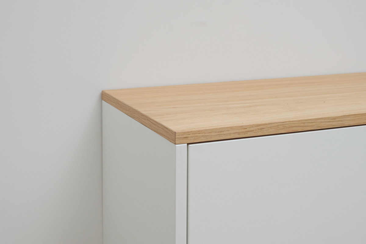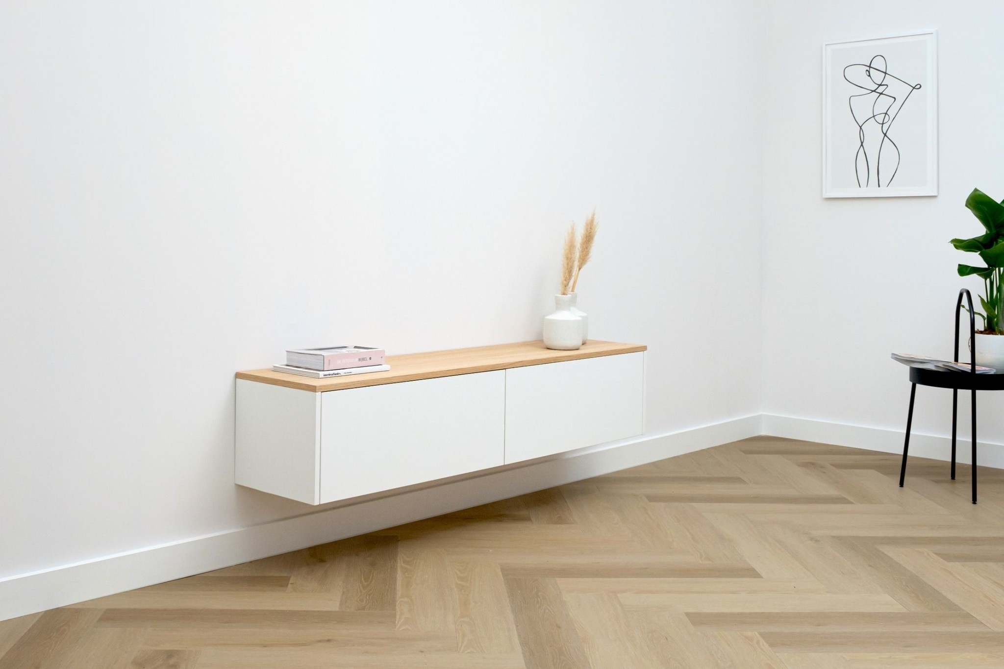 Door de witte kleur en het eiken blad krijgt het Tv meubel een hele luxe uitstraling. Eventueel is de kast ook in mat zwarte afwerking verkrijgbaar. Ben je er nog niet helemaal uit? Bestel dan eenvoudig een kleurmonster!