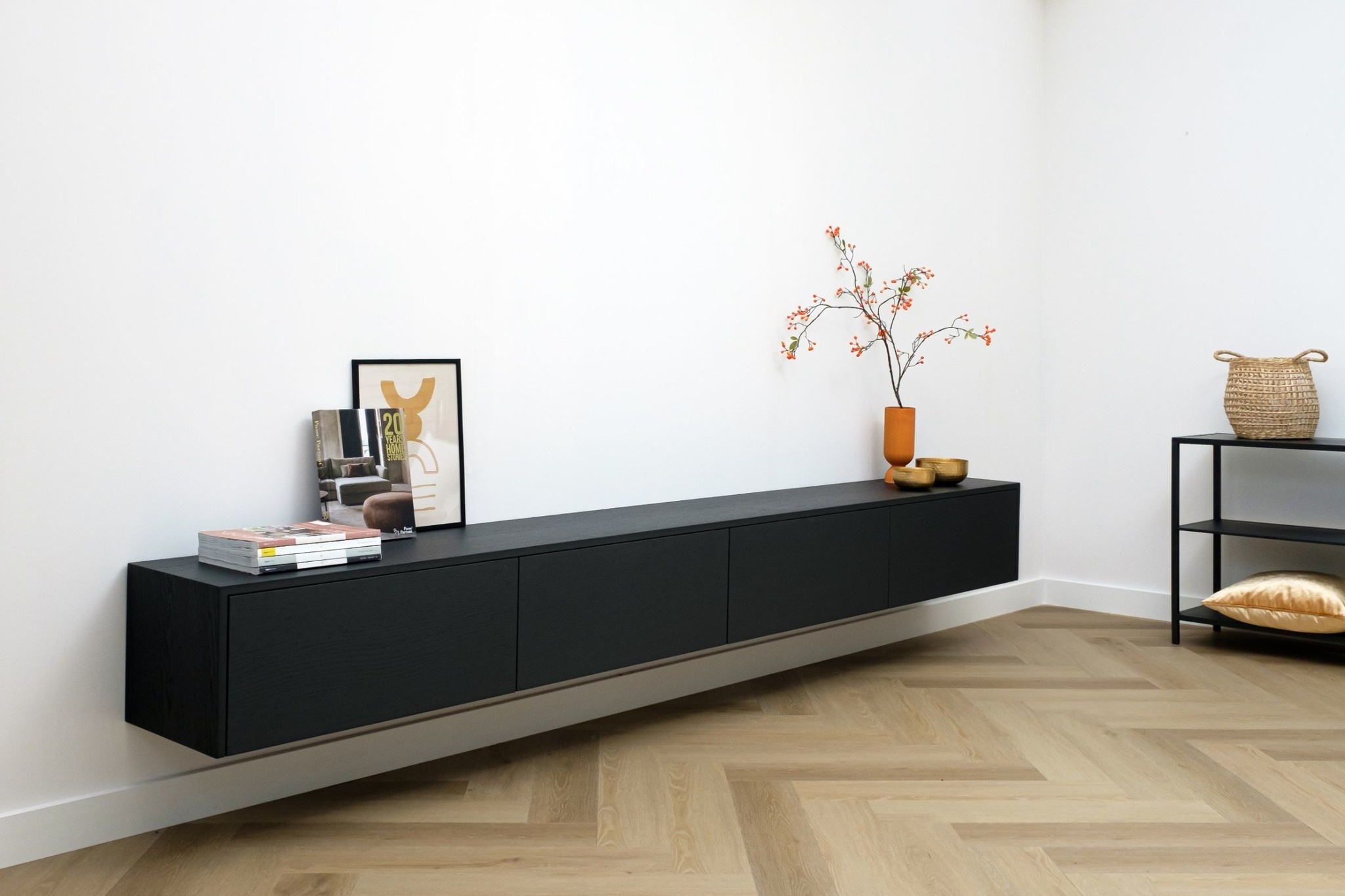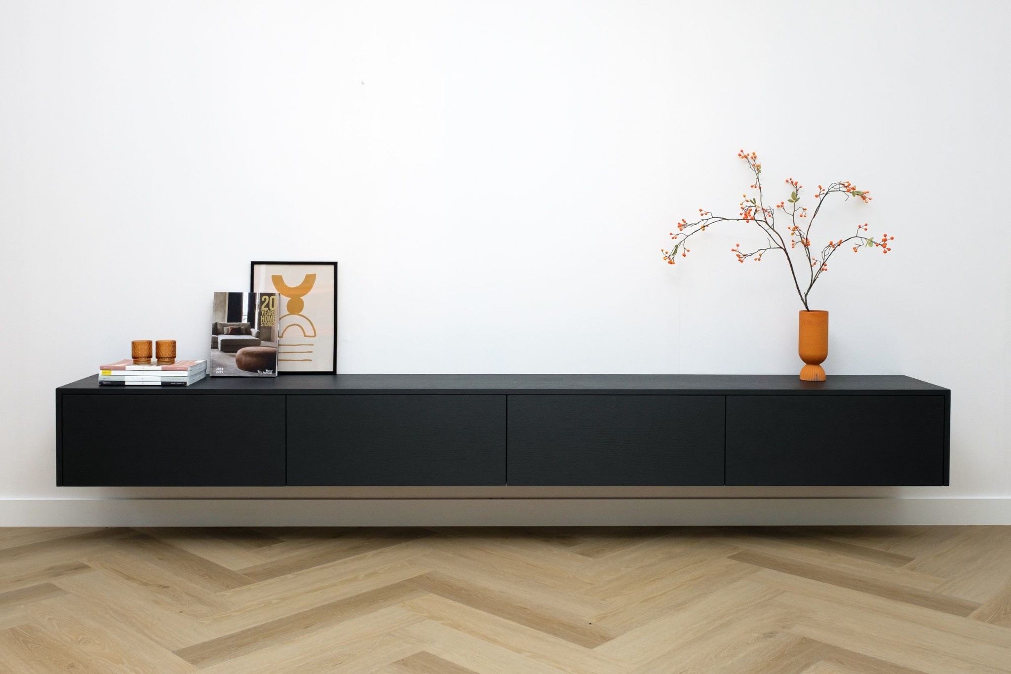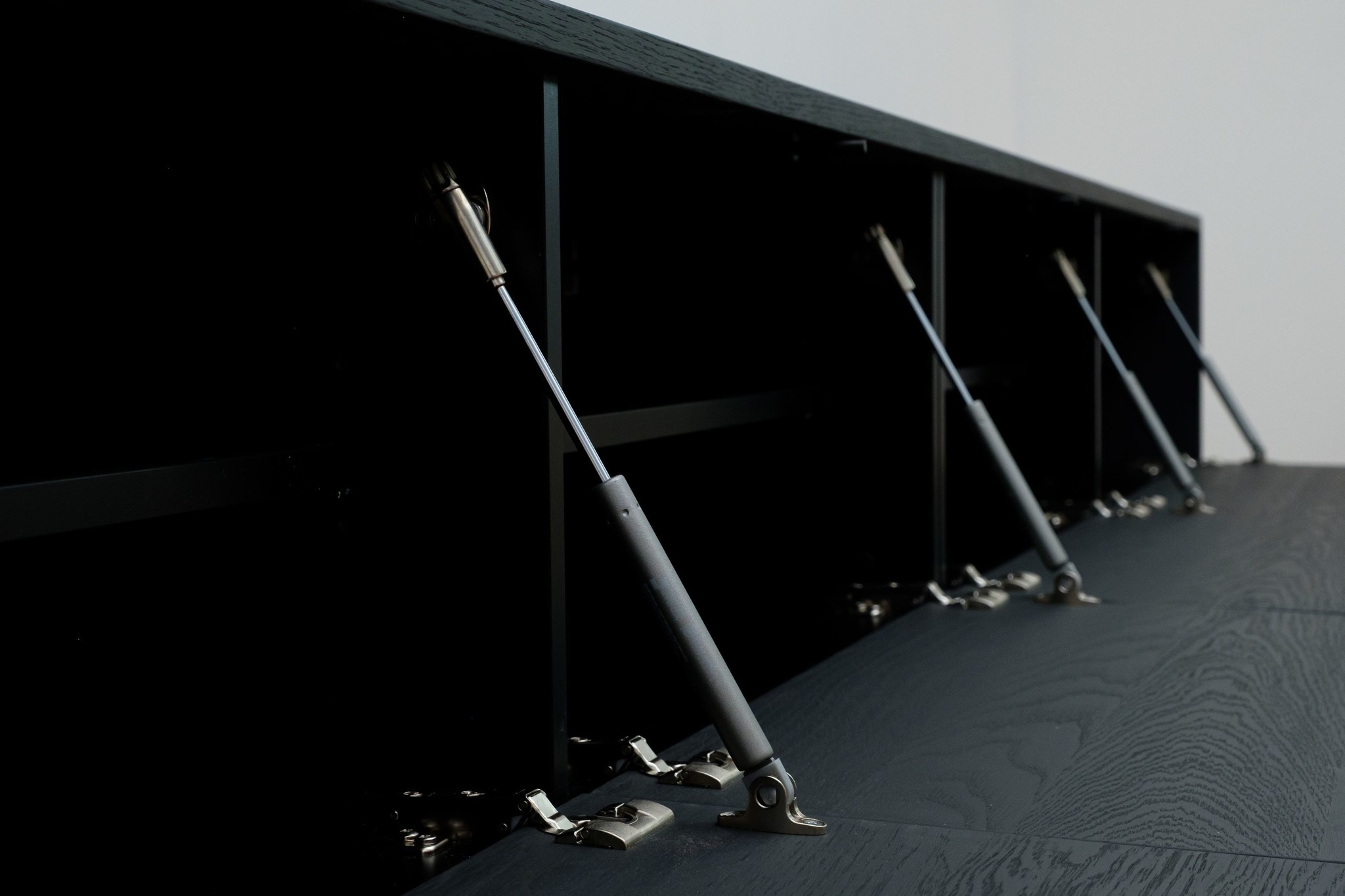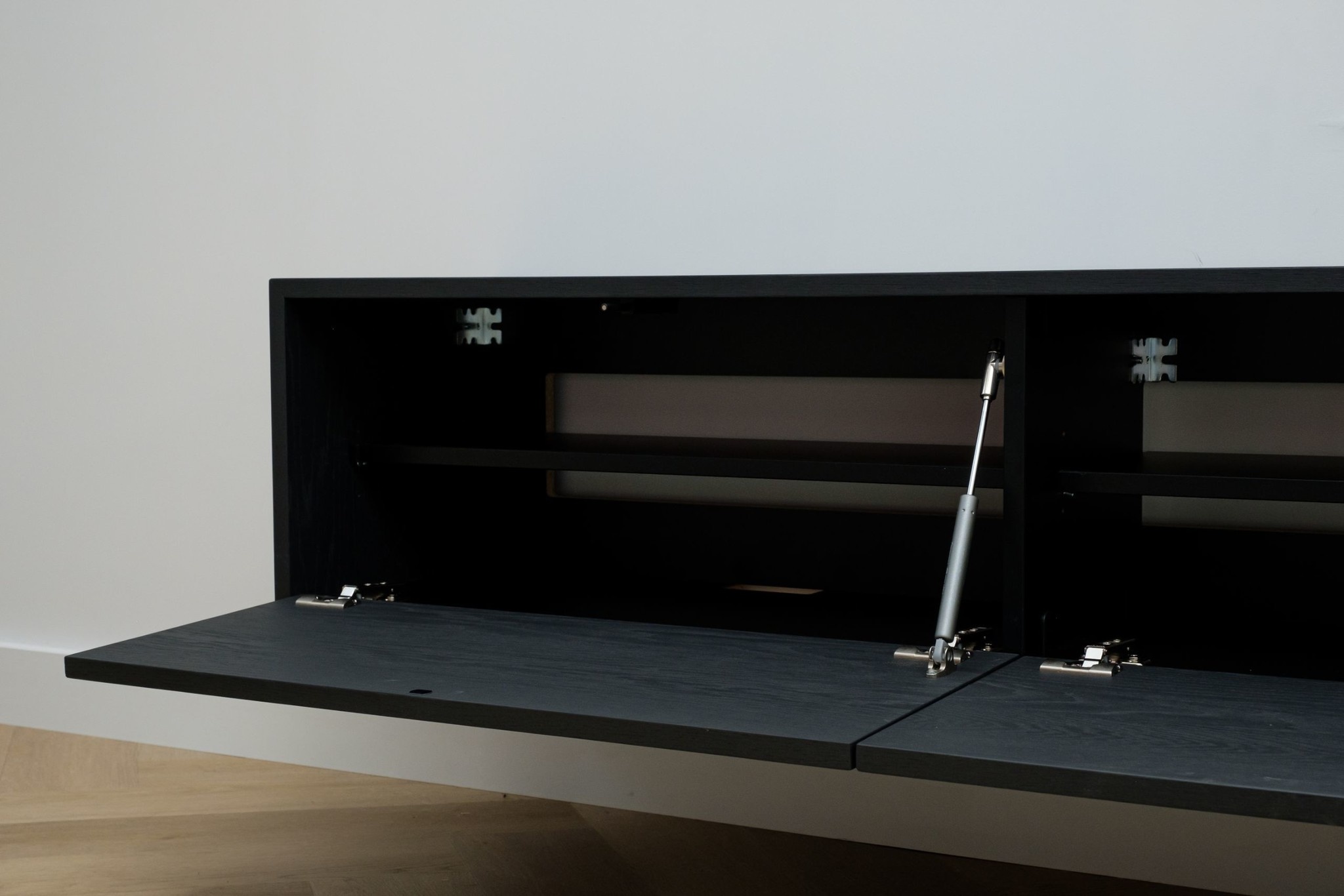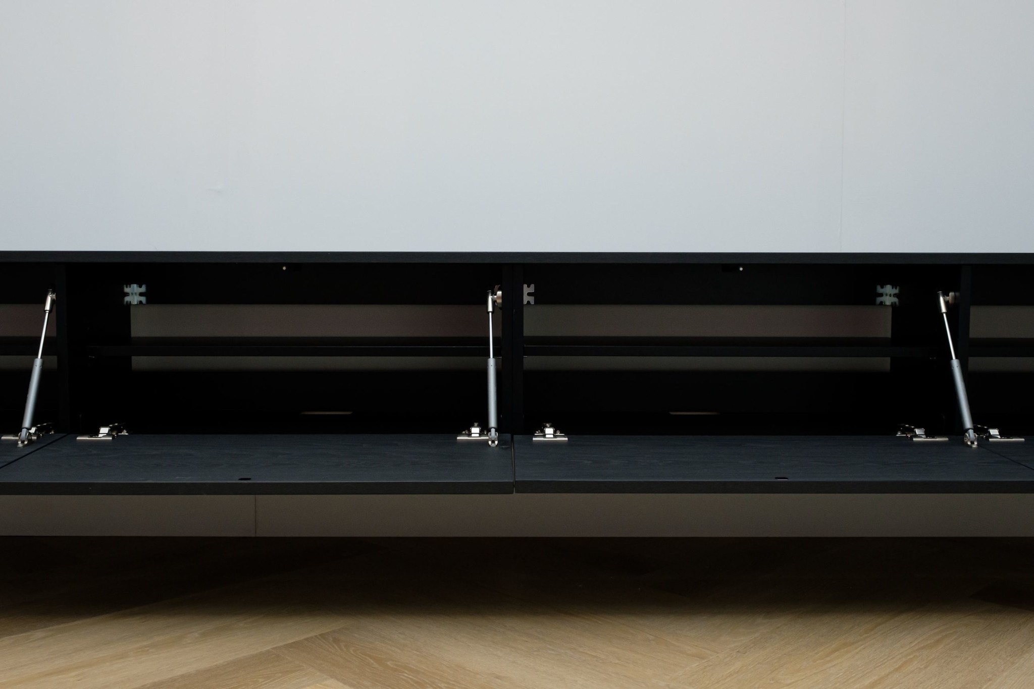 Het Tv meubel is greeploos uitgevoerd en voorzien van 4 valkleppen. Met het “push-to-open†systeem en de hoogwaardige gasveren openen de kleppen heel rustig door een simpele duw tegen het front.