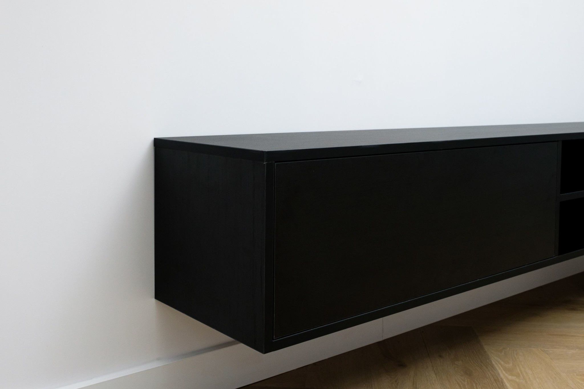 _x000D_Door de zwarte kleur en de subtiele houtnerf krijgt het Tv meubel een hele luxe uitstraling. Eventueel is de kast ook in mat witte afwerking verkrijgbaar. Ben je er nog niet helemaal uit? Bestel dan eenvoudig een kleurmonster!