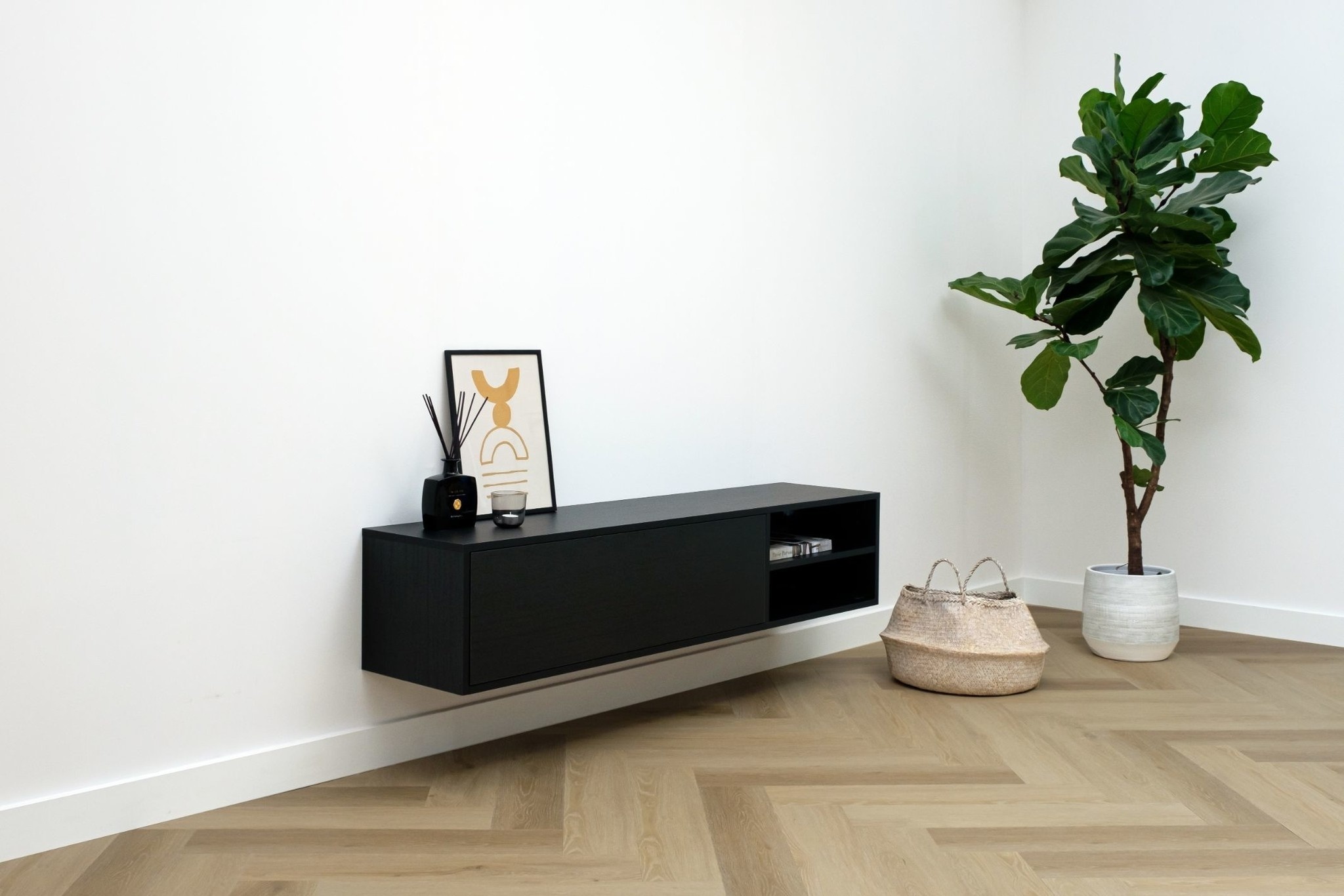 Tv meubel open vak en 1 klep in zwart eiken